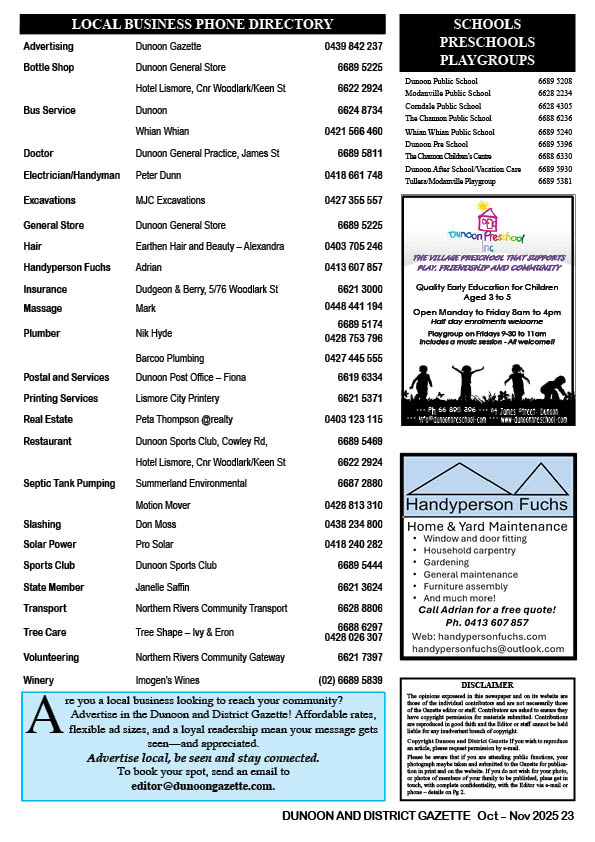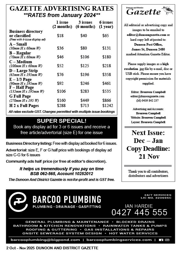 It’s a wonderful way to get involved in your community – and help keep our local stories alive. Contact us at editor@dunoongazette.com.
